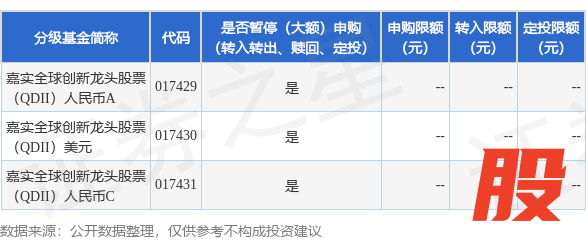 本站消息,6月17日嘉实基金管理有限公司发布《关于嘉实全球创新龙头股票(QDII)2025年6月19日暂停申购、赎回及定期定额投资业务的公告》。公告中提示,为2025年6月19日纽约证券交易所、纳斯达克证券交易所休市东程配资,自2025年6月19日起嘉实全球创新龙头股票(QDII)2025年6月19日暂停申购、赎回及定期定额投资业务,下属分级基金调整明细如下: